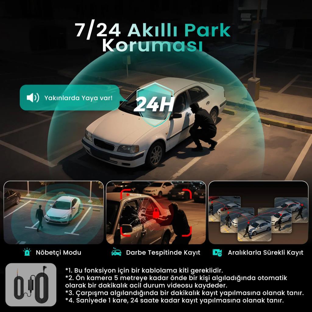 360+ Botslab G980H Pro 3K ve Park Modu Akü Bağlantı Kablosu KOMBO