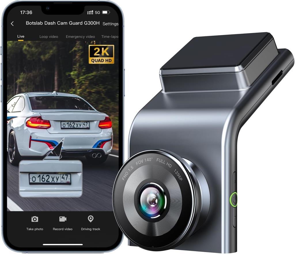 360+ Botslab G300H Pro 2K QHD ADAS Wifi + GPS 140° Geniş Açı Gece Görüşlü Akıllı Araç İçi Kamera + Park Modu Bağlantı Kablosu Combo