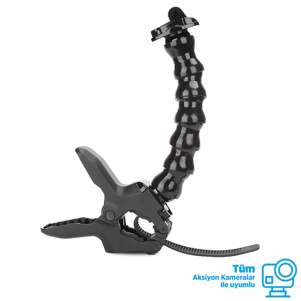 GoPro Aksiyon Kameraları İçin Jaws Esnek Mandal Bağlantı Aparatı (Kelepçe + Esnek Boyunluk)