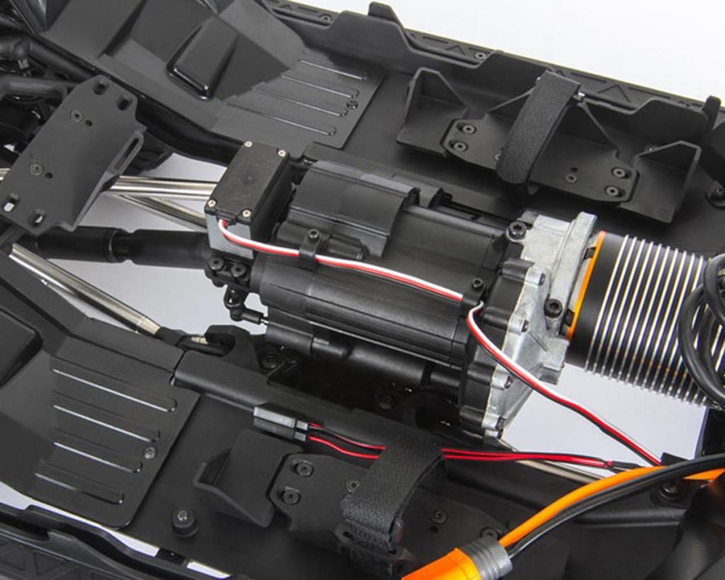 - Güçlü bir Spektrum™ S905 Büyük Ölçekli Metal Dişli direksiyon servosu içerir (birlikte verilen adaptörle daha büyük 1/5 ölçekli servoları da kabul eder)