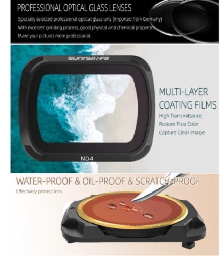 • 4 adet ND Filtre Seti: ND4, ND8, ND16, ND32