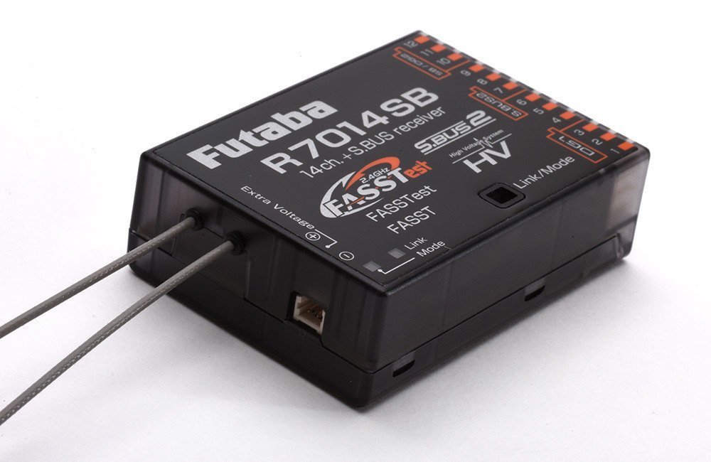 Bu Futaba'nın amiral gemisi alıcılarından biridir, yüksek uçlu RC modellemesi için gereken özelliklerle doludur. 14 PWM kanalı vardır, ayrıca S.Bus ve S.Bus2 teknolojisine sahiptir. Ekstra çok yönlülük için R7014SB, FASST veya FASSTest sistemlerini çalıştırabilir, böylece eski vericilerle veya en yeni telemetri özellikli türlerle kullanılabilir. İkili çeşitlilikli anten, mümkün olan en iyi alımı elde etmek için onları farklı eksenlere monte etmenize izin verir.