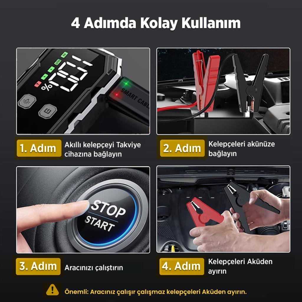 15800mAh | 2000A | Akıllı kelepçe | Powerbank | LCD Ekran