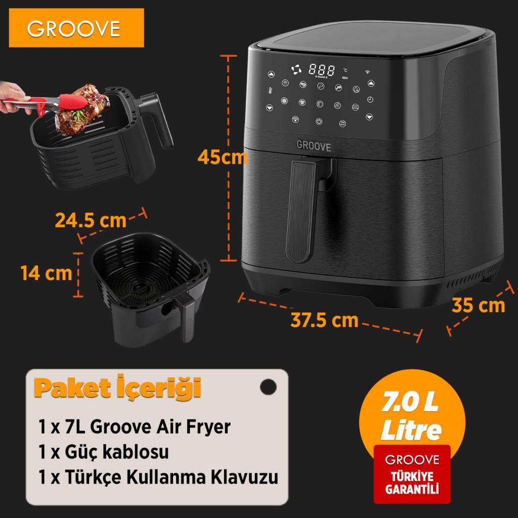 Groove Max XXL 7L 1800W WiFi Smart Airfryer Air Fryer Yağsız Sıcak Hava Fritözü Siyah