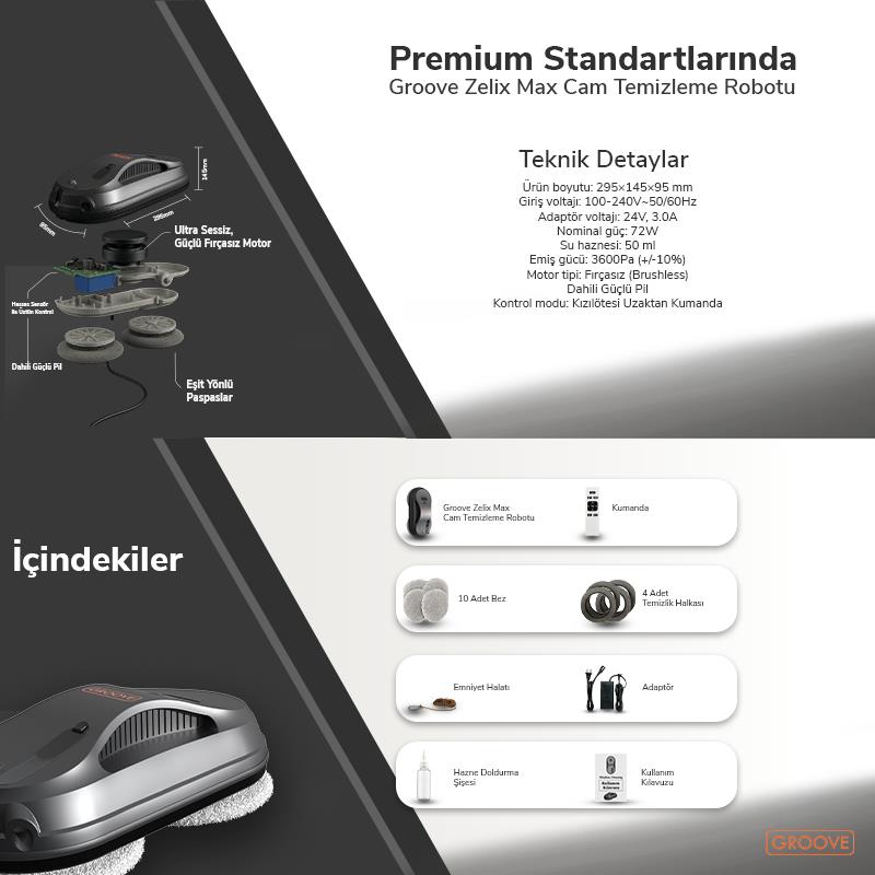 Groove Zelix Max Akıllı Cam Temizleme Silme Robotu +Yapay Zeka Desteği+Ultra Sessiz+Akıllı Sensör