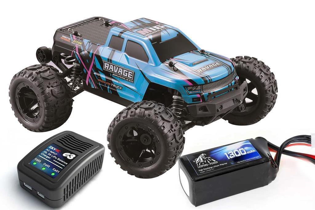 HAIBOXING 1/16th scale 4WD Brushless Truck Uzaktan Kumandalı Araba RTR (Mavi) + 1300 mAh 7.4V 2S 30C Lipo Batarya + SKYRC E3 LiPO Şarj Cihazı