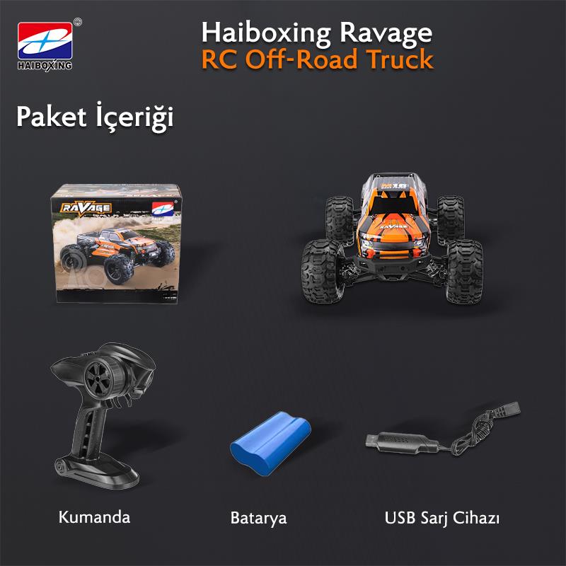 HAIBOXING RC 1/16 Ravage 45+ KM/H Sürat Uzaktan Kumandalı RC Model Araba RTR Elektrikli 4WD Brushless Fırçasız Offroad Truck (Turuncu)