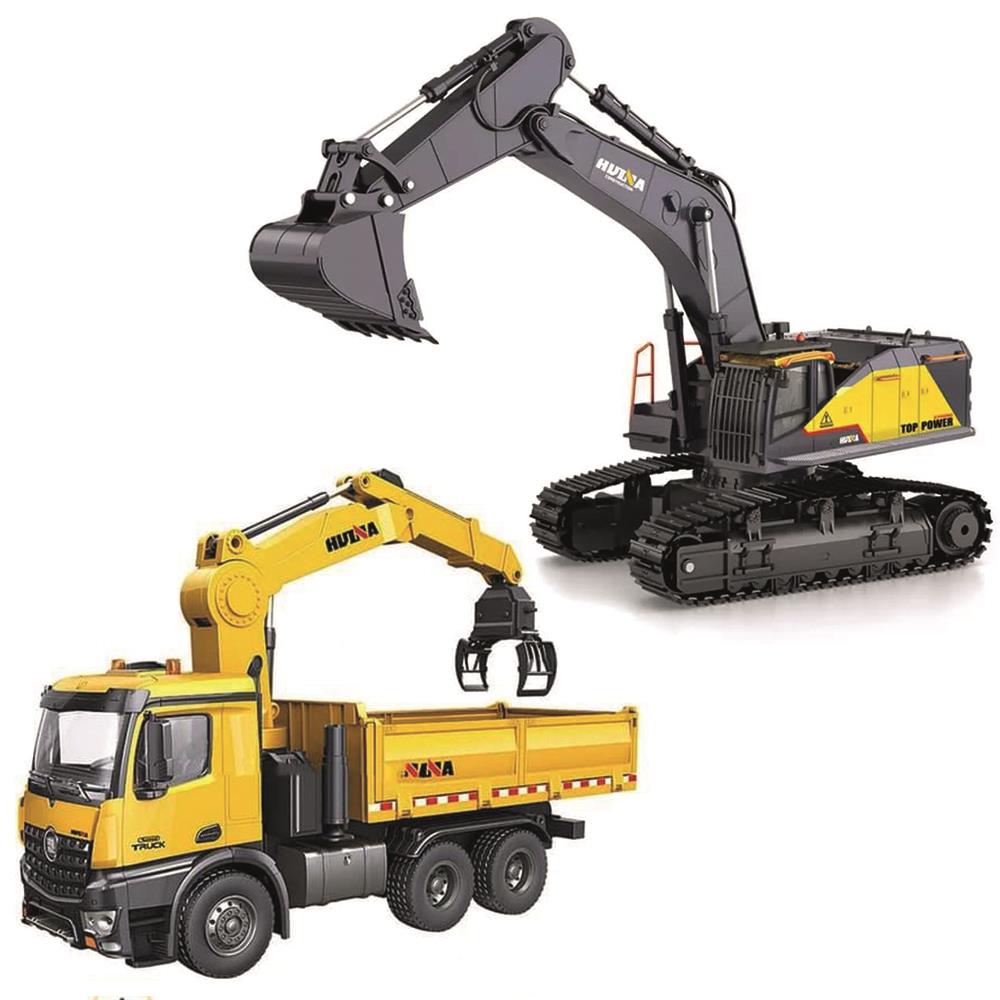 HUINA 1/14 Yüksek Kalite RC Model - Metal Kepçeli Ekskavatör Kazıcı + Tutma Kollu Kepçeli Damperli Kamyon Kombo Set