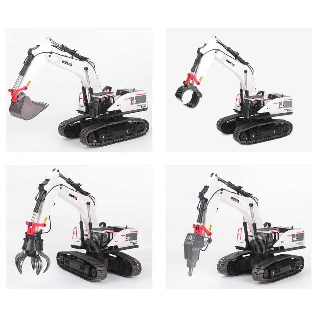 HUINA 1594/1573 Profesyonel 22 Kanal 1/14 RC Model 4 Farklı Kepçeli Ekskavatör Kazıcı + RC Model Damperli Kamyon Uzaktan Kumandalı Metal İş Makinası