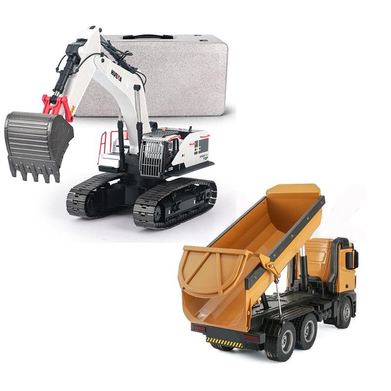 HUINA 1/14 Yüksek Kalite RC Model - Profesyonel Kepçeli Ekskavatör Kazıcı + Damperli Kamyon Kombo Set
