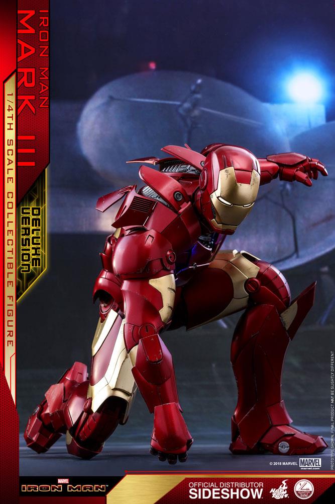 Tony Stark'ın üçüncü zırh takımına dayanan karmaşık bir tasarıma sahip olan Mark III, Tony'nin Hotrod kırmızı ve altın renk şemasından ilham alan ustalıkla tasarlanmış savaş takımının ilk yorumuydu. Bu çeyrek ölçekli koleksiyon figürü yaklaşık 48,5 cm (19 inç) boyunda, yeni boyanmış Tony Stark miğferli kafa heykeli, LED ışıklı gözlere sahip değiştirilebilir miğferli kafa, LED ışıklar zırhın çeşitli alanlarında parlıyor, ustaca uygulanmış metalik kırmızı ve altın zırh üzerindeki renkler, iç mekanik tasarımı veya gizli silahları ortaya çıkarmak için mafsallı zırh parçaları ve değiştirilebilir savaşta hasar görmüş göğüs ve omuz zırhı!