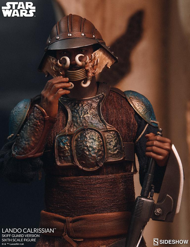 Sideshow, galaksinizi Star Wars koleksiyonlarından korumaya hazır Lando Calrissian Skiff Guard Versiyonu Altıncı Ölçekli Figürü sunar.