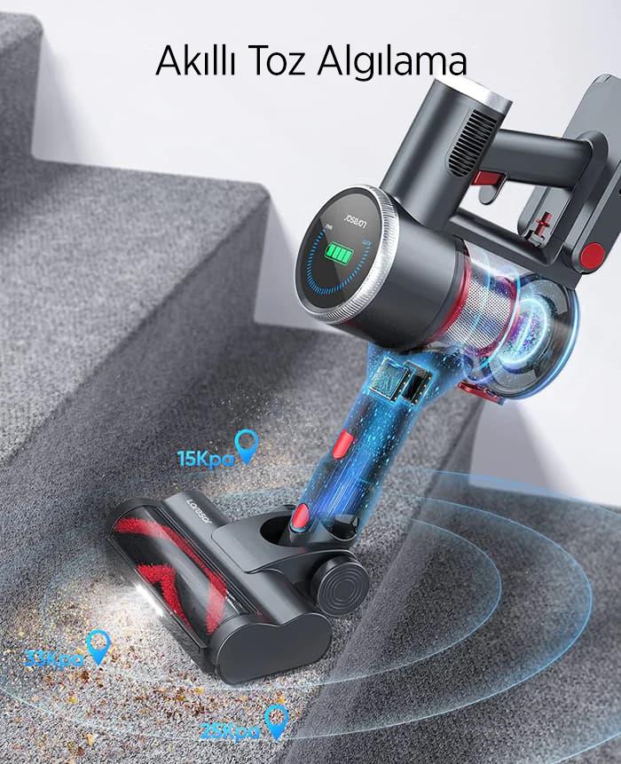 Büyük boyutlu bir akıllı ekrana sahip olan Laresar elektrikli süpürgeler, pil seviyesi, emiş performansı, fırça sıkışması uyarıları ve toz dolu uyarıları dahil olmak üzere çalışma durumu hakkında gerçek zamanlı geri bildirim sağlar. Size geleneksel elektrikli süpürgelerden daha iyi hizmet vermek için insanlaşmış tasarım. - KADEMESİZ HIZ AYARI: