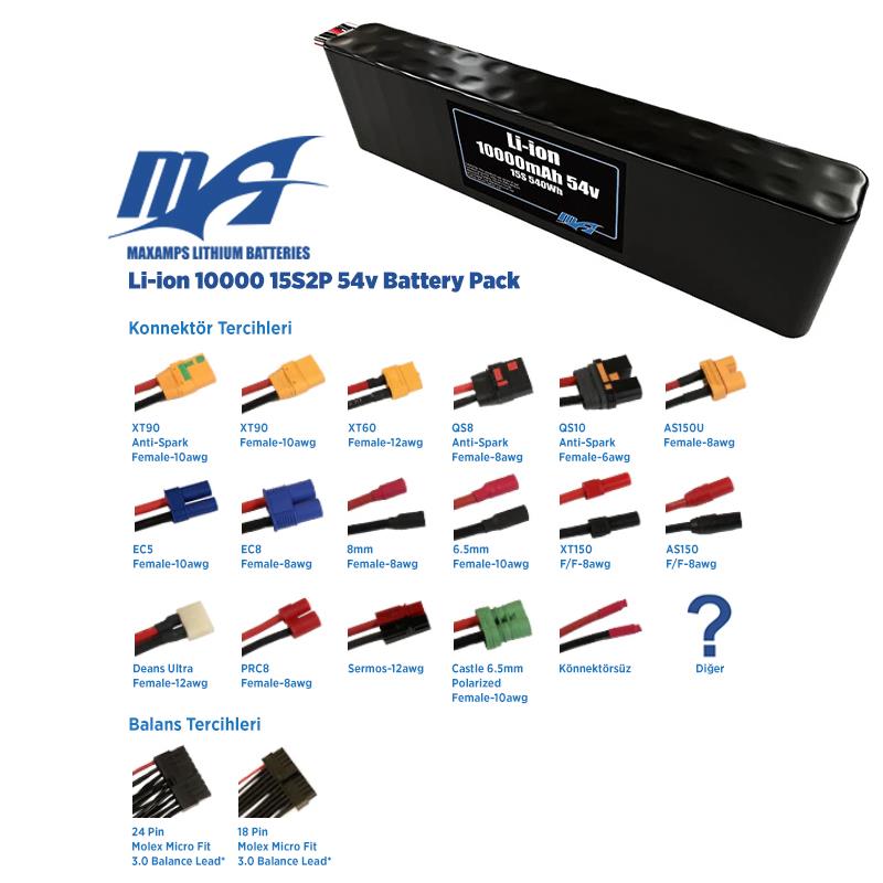 MaxAmps 10000 mAh 15S 2P 54v Lityum İon Li-İon Batarya Pil