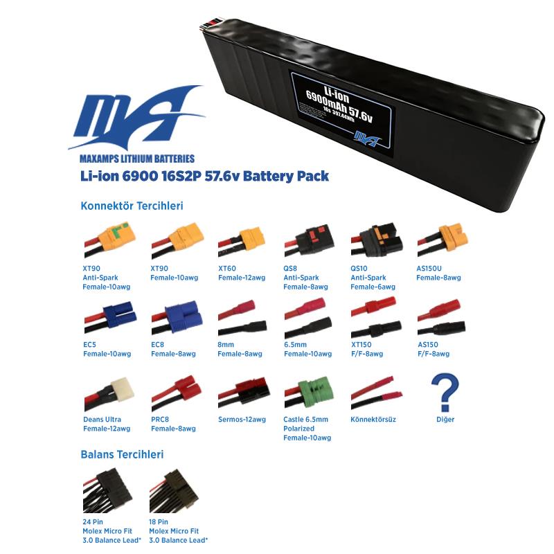 MaxAmps 6900 mAh 16S 2P 57.6v Lityum İon Li-İon Batarya Pil