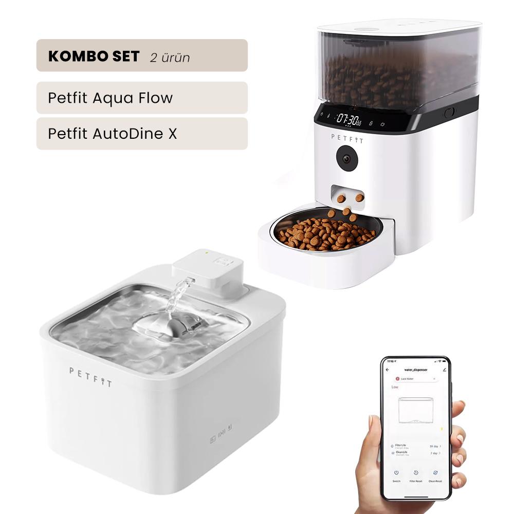Petfit Aqua Flow WiFi Akıllı Bataryalı Otomatik Kedi Köpek Su Pınarı Çeşmesi Şelalesi+Petfit AutoDine X 5L Wi-Fi Kameralı Akıllı Otomatik Mama Kabı Besleme Ünitesi Bundle