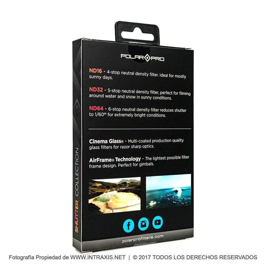 Sinema Serisi Shutter kolleksiyonu, piyasada bulunan en yüksek seviye cam ve kaplamalardan üretilir. Sinema serisi en iyisini isteyen pilotlar içindir. Shutter koleksiyonu ND16, ND32 ve ND64 Filtre barındırır. Bütün filtreler PolarPro AirFrame™ tasarımı ile üretilmiştir.