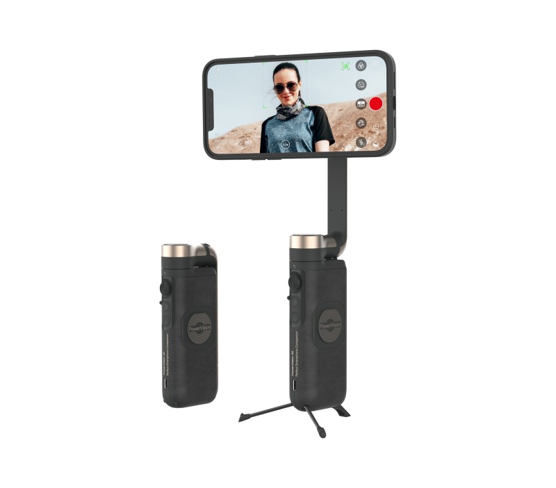 3 Eksenli bir gimbal , kablosuz powerbank ve tripod`u cebinizde taşıyın.