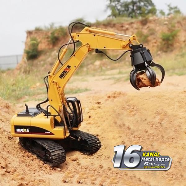 HUINA 1/14 Yüksek Kalite 16 Kanal RC Model Grabber Paletli Ekskavatör Kavrayıcı Kollu Uzaktan Kumandali Çok Fonksiyonlu İş Makinası - 2.4G Sesli & Işıklı - 1571