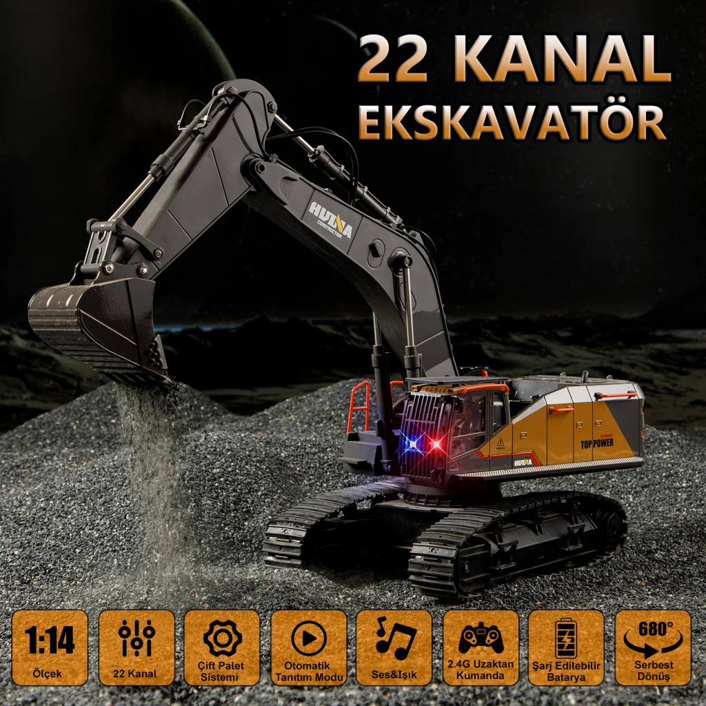 HUINA 1/14 Yüksek Kalite 22 Kanal RC Model Metal Kepçeli Ekskavatör Kazıcı Uzaktan Kumandali Çok Fonksiyonlu Is Makinasi - 2.4G Isikli - 1592 - Yetiskinler Içindir + 14