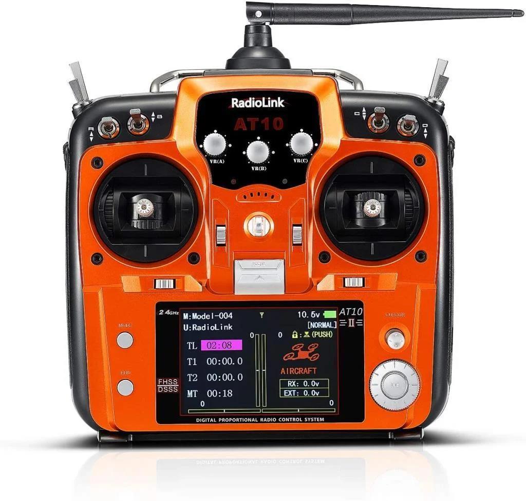 Radiolink AT10II 2.4Ghz 12 Kanal DSSS/FHSS Radio Kontrol Uzaktan Kumanda +R12DS Alıcı+PRM-01 Telemetri Sensörü S-BUS+PPM+PWM Turuncu (4KM Kontrol Mesafesi)