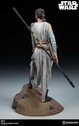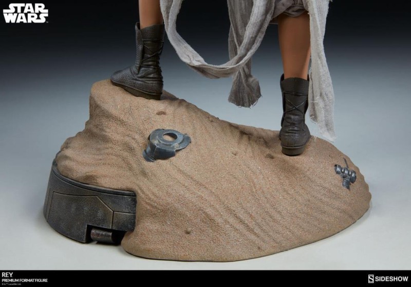 Rey, çorak çorak arazisini çevreleyen düşmüş bir İmparatorluğun tarihini yakalayan mekanik unsurlarla kumlu bir kaide üzerinde durmaktadır. Figür, aktris Daisy Ridley’nin Rey gibi güçlü performansına dayanan ve karakteri galaksideki bir maceraya özlem duyan ve onu özleyen bir anı yakalayan, güzel ve inanılmaz derecede doğru bir portreye sahip.