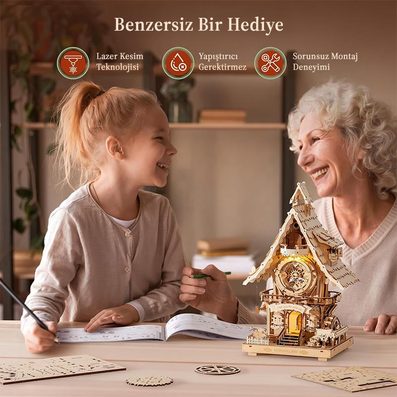 ROKR LC901 Cuckoo Clock Wood Color Mechanical 3D Wooden Puzzle