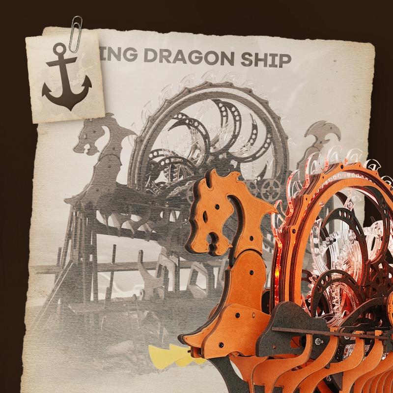 ROKR LK802 Viking Dragon Ship Mechanical 3D Wooden Puzzle