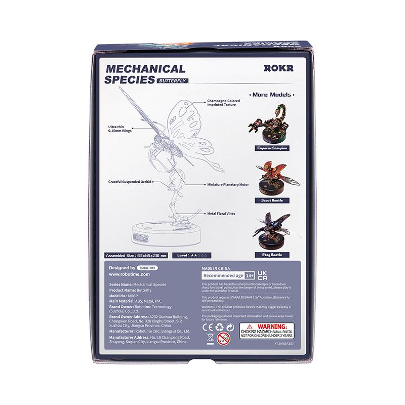 ROKR MI05P Butterfly Pink DIY Mechanical 3D Puzzle