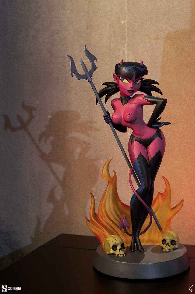 Şeytan Kız Heykeli 11,75 inç boyundadır ve cehennem üssünde kendinden emin bir şekilde poz verirken bir dirgen tutar. Sanatçı Shane Glines'ın bu parlak renkli karakteri, boynuzları, kuyruğu ve yüzünde alaycı bir ifadeyle tam bir kız. Yarı saydam alevler kötü kadının arkasına tırmanırken, bir çift kafatası ayaklarının dibinde durarak şeytani gösteriyi tamamlıyor.