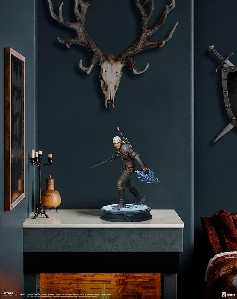 Kahramanın hit fantastik video oyunu The Witcher 3: Wild Hunt'taki ikonik görünümüne dayanan Geralt Heykeli, kıyamet Beyaz Frost'u çağrıştıran buz temalı bir taban ile 16.75" boyunda ve 10.85" genişliğindedir. Beyaz Kurt, bir elinde canavar öldüren kılıcı, diğerinde Vahşi Av köpeğinin kopmuş başıyla savaşa hazırdır.