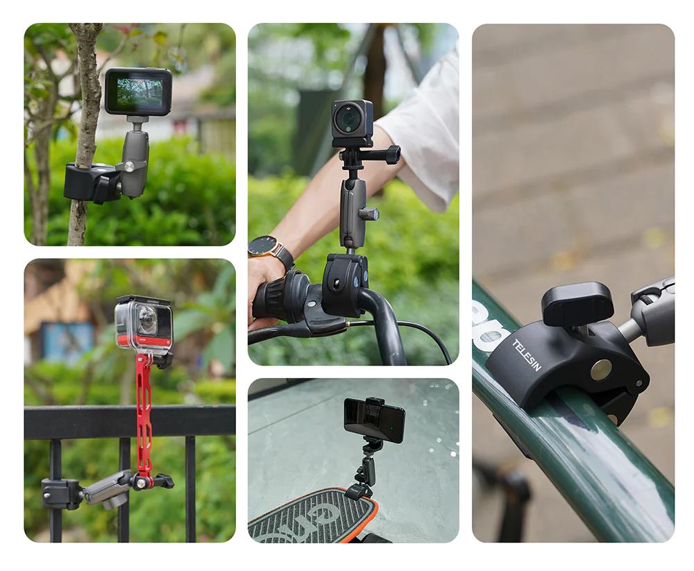 TELESIN Alüminyum Alaşımlı Açılı Handlebar Mount ( GoPro Hero11 Black / Hero10 Black / Hero9 Black / Hero8 / Insta360 / Sjcam / Osmo Action )