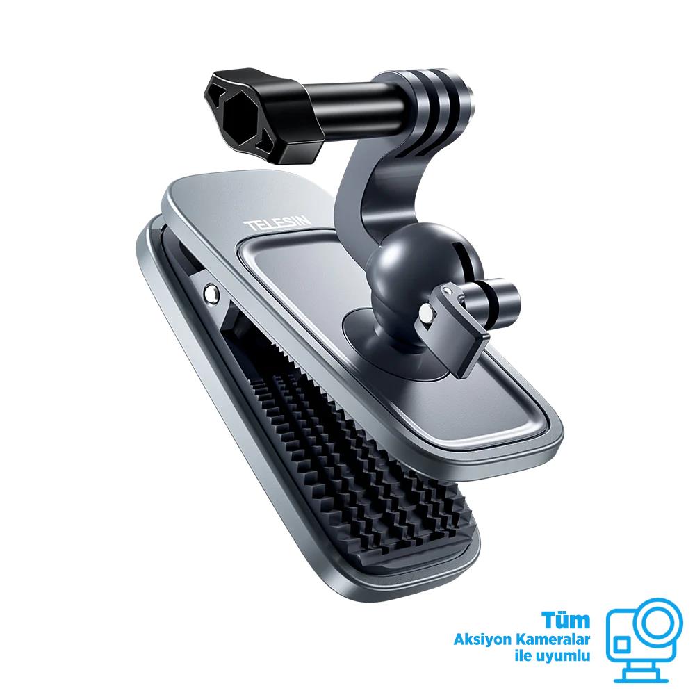 TELESIN GoPro İçin Manyetik 360 Derece Çanta ve Sırt Çantası Klipsi ( GoPro Hero11 Black / Hero10 Black / Hero9 Black / Hero8 Black / Insta360 / Sjcam / Osmo Action )