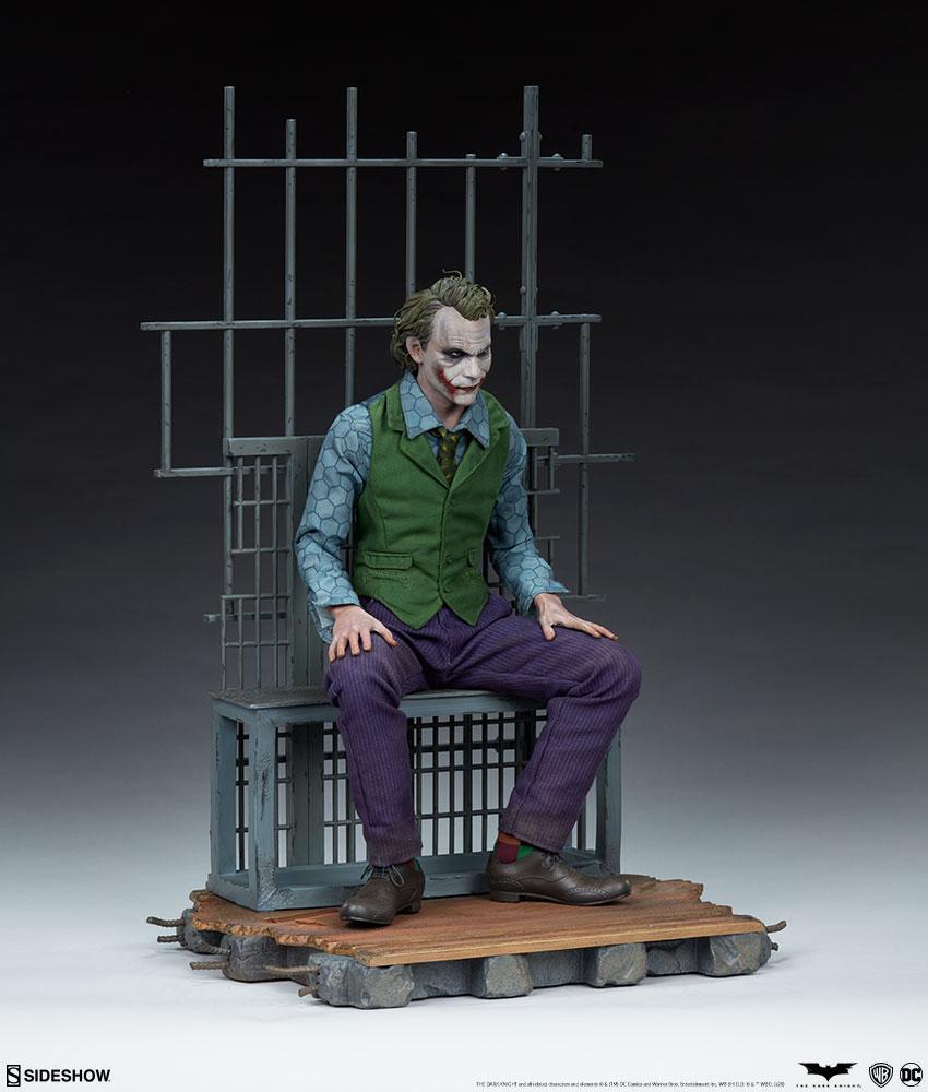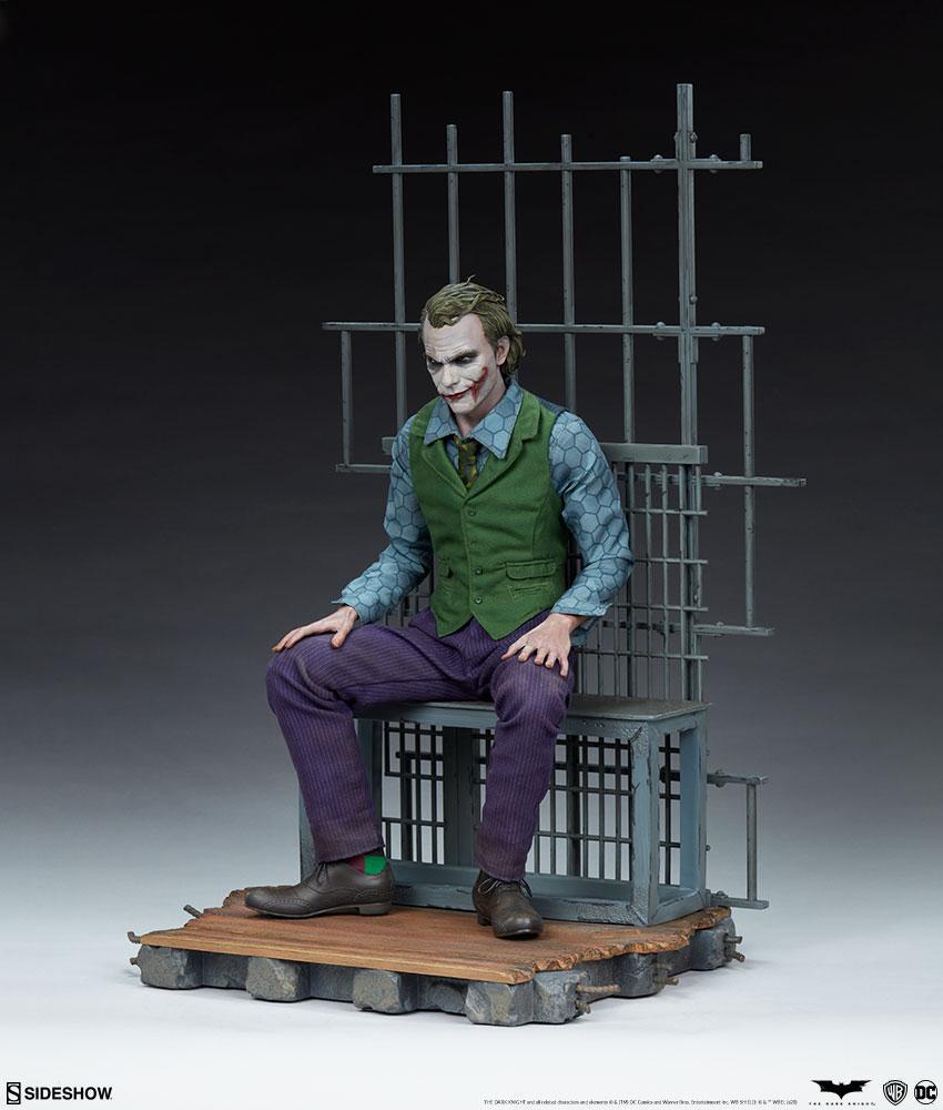 The Joker Premium Format™ Figure measures 20” tall and captures every chilling detail of Heath Ledger’s haunting performance as the Clown Prince of Crime himself. Based on the Gotham City police department scene from the film, this collectible includes a detailed environment base with jail bars that can be magnetically placed in front of or behind the figure for multiple display options.