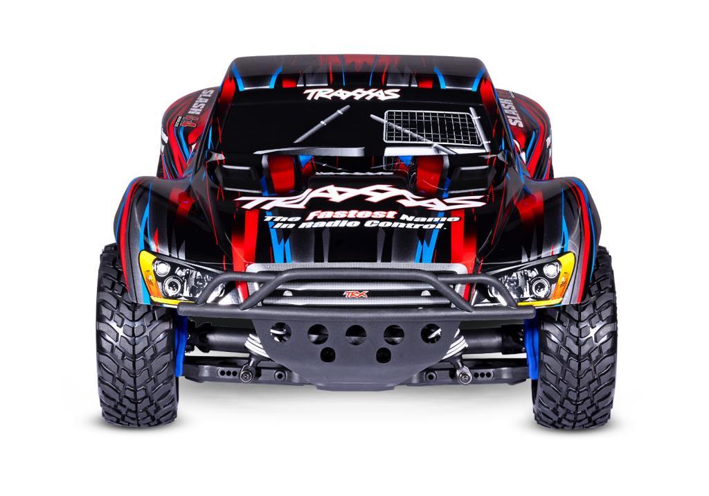 MODEL 68154-4: Slash 4X4 Fırçasız: 1/10 ölçekli kısa parkur kamyonu, tamamen monte edilmiş, su geçirmez elektronik: Ready-To-Race®, TQ™ 2,4 GHz 2 kanallı radyo sistemi, BL-2s™ fırçasız güç sistemi ve klipssiz boyalı gövde. Gereksinimler: pil ve şarj cihazı.