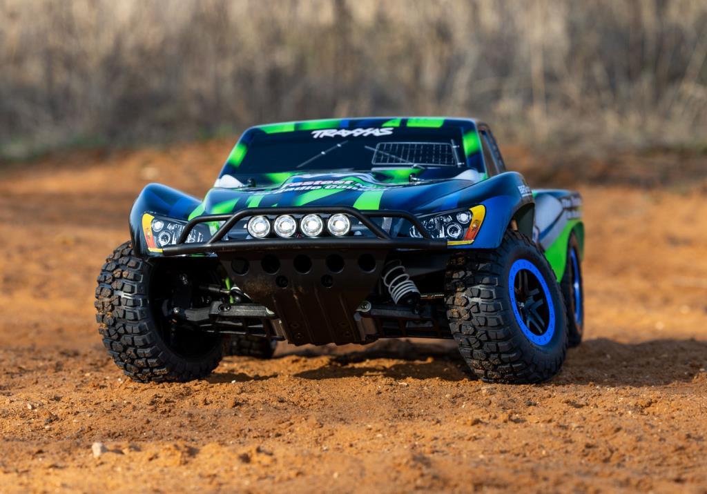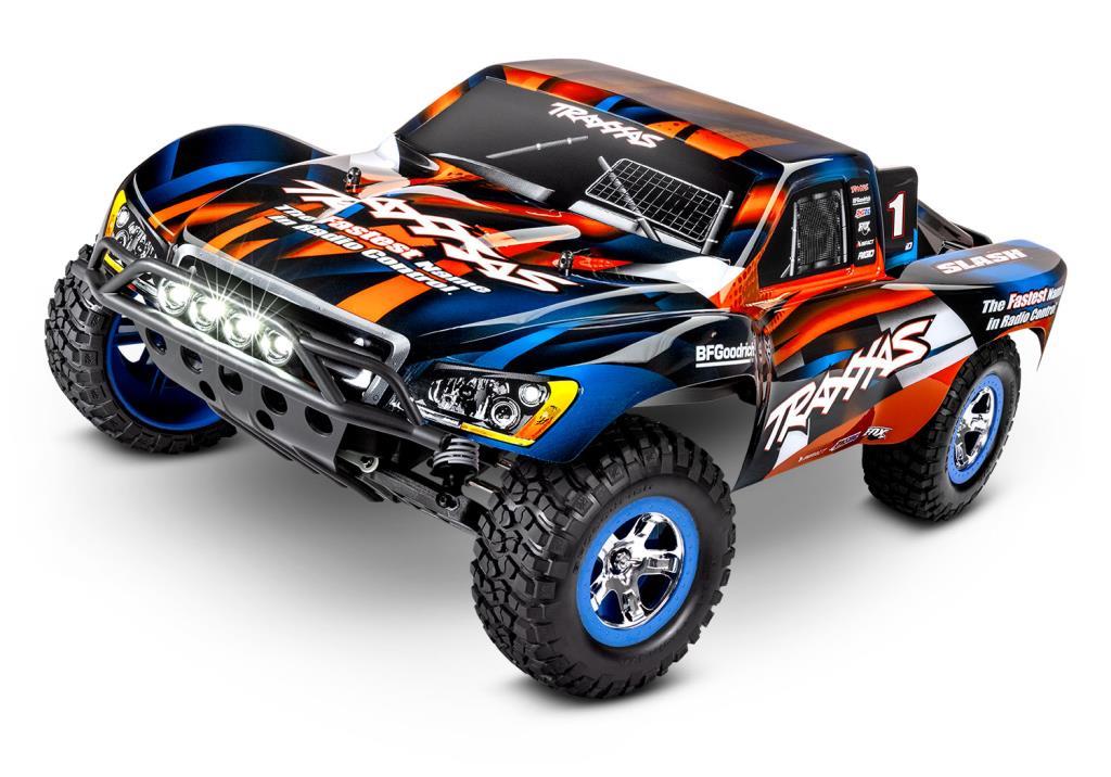 Resmi lisanslı boya ve grafiklere sahip Yarış sürümlerinde mevcuttur Traxxas 4-amp DC Tepe Algılama Hızlı Şarj Cihazı iD® özellikli 8.4V 3000mAh Güç Hücresi NiMH pil Titan® 12-Turn 550 modifiye motor XL-5 su geçirmez elektronik hız kontrolü Su geçirmez alıcı kutusu ve direksiyon servosu Metal dişli Magnum 272™ şanzıman Torque-Control™ kaydırmalı kavrama Yakalanmış çubuk uçlu ayarlanabilir çelik gerdirmeler Lastikler, saten kaplamalı 2.2" Slash jantlara monte edilmiştir. İsteğe bağlı 23 dişli pinyon dişlisi dahildir