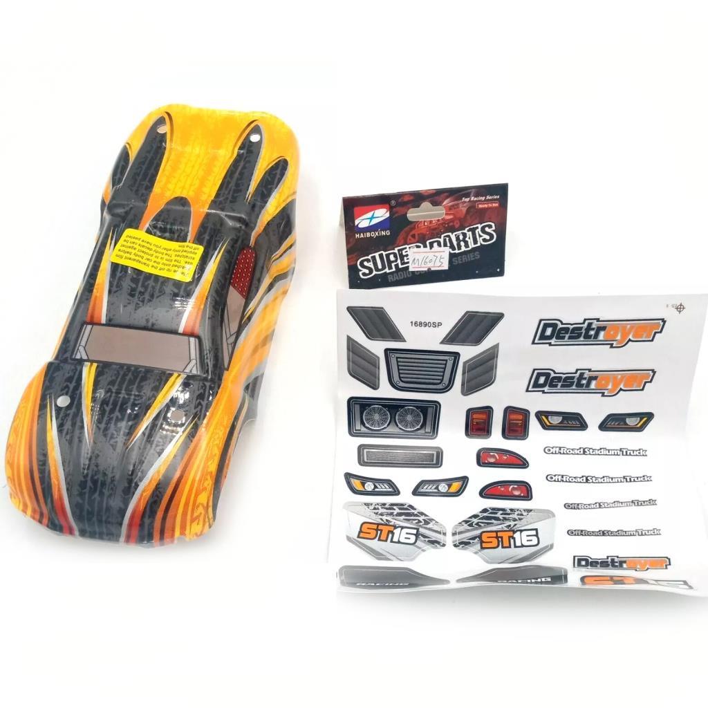 HAIBOXING 16890A/16890 Destroyer Truggy RC Araba İçin Body Gövde Kep Turuncu+Sticker Çıkartma Seti M16075