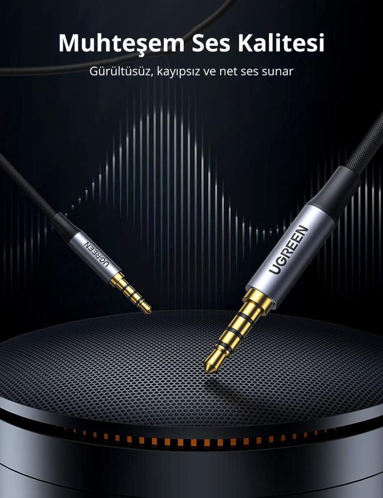 UGREEN 4 Kutuplu Aux kablosu hem ses hem de mikrofon işlevini destekler. Mikrofon işlevli kulaklıklar için mükemmel yedek kablodur. 3.5mm erkek-erkek kablo, Hi-Fi stereo sesi doğrudan çıkış cihazlarından giriş cihazlarına, ses dönüştürücüler olmadan, örneğin dizüstü bilgisayarı hoparlöre, telefondan kulaklığa, TV’den ses çubuğuna, telefondan araba stereo sistemine aktarır.