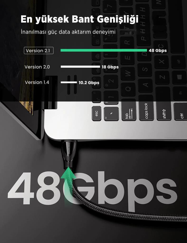 Bu 8k hdmi 2.1 sürüm kablosu, 48Gbps'ye kadar bant genişliğini, sinyal kaybı olmadan yüksek hızlı iletimi, hdmi 2.0 ve hdmi 1.4'ten çok daha hızlı destekler.