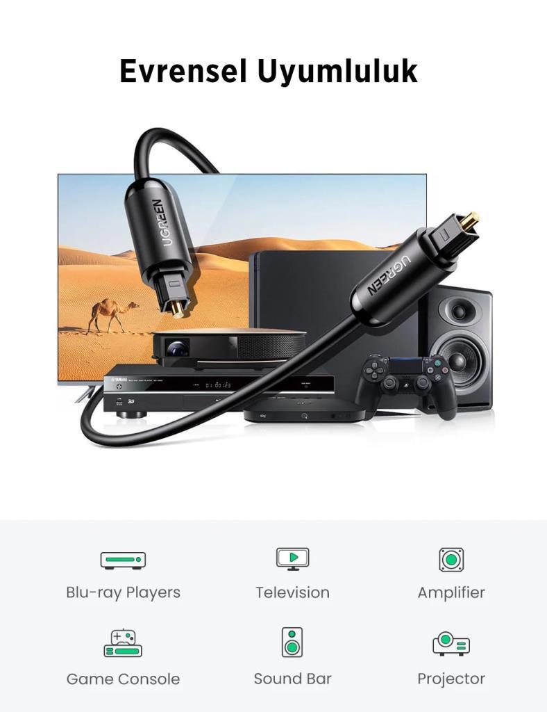 Ugreen Fiber Optik Ses Kablosu Siyah 1 Metre