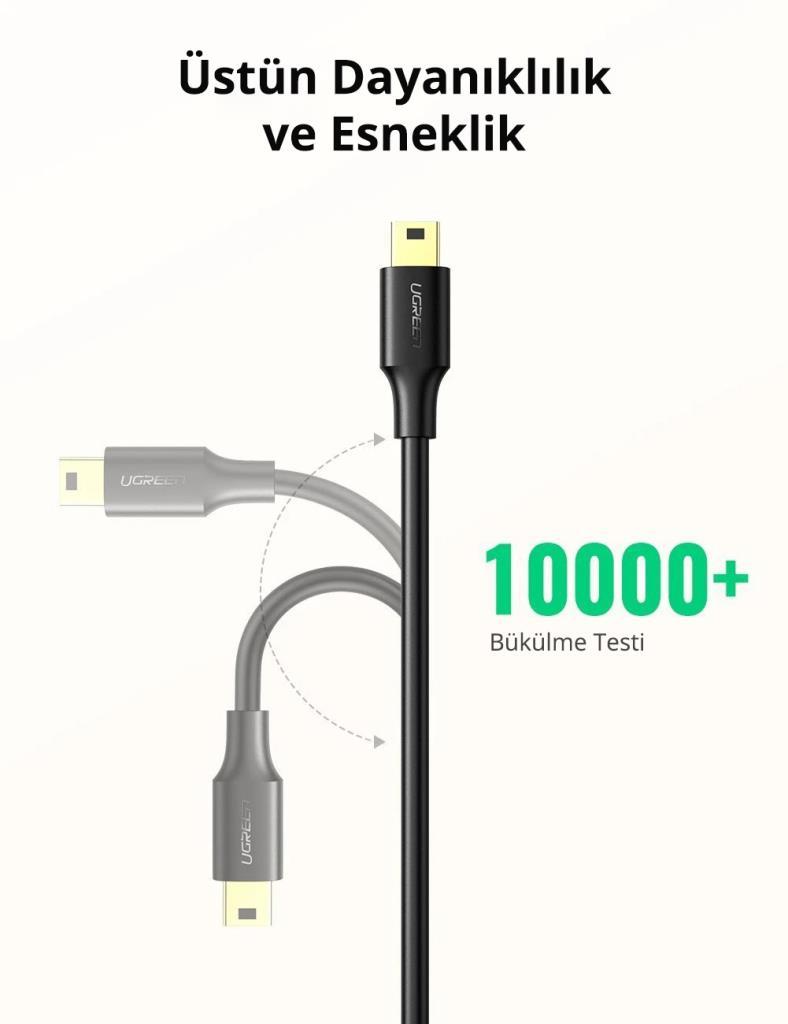 Ugreen Mini USB Şarj ve Data Kablosunun bir ucunda standart bir USB A konnektörü ve diğerinde Mini USB konnektörü bulunur. USB A konnektörünü bilgisayarınıza, ardından Mini USB konnektörünü Mini Type-B bağlantı noktasına sahip bir cihaza takabilirsiniz. Cep telefonları, MP3 oynatıcılar, tabletler, dijital kameralar ve dijital kameralar gibi cihazlarda genellikle Mini USB bağlantı noktaları bulunur.