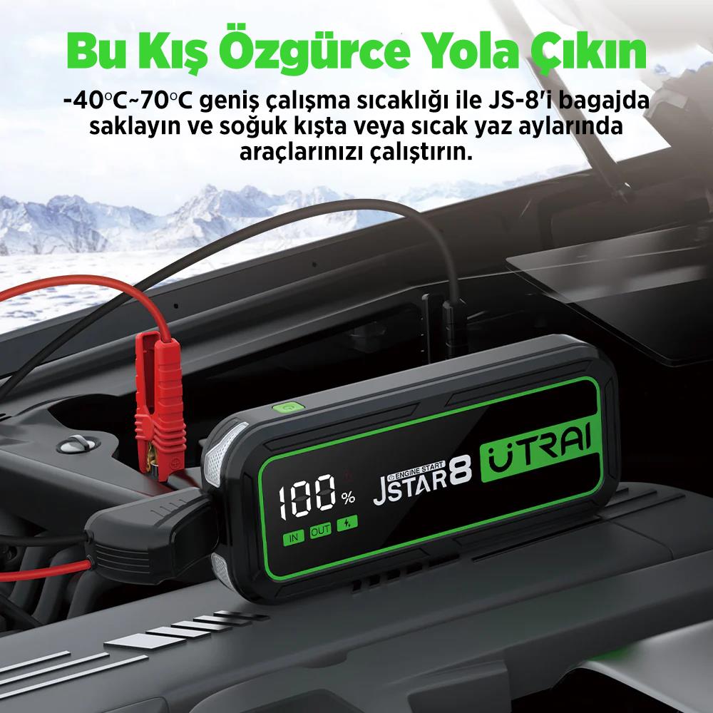 UTRAI Jstar 8 74Wh 20000mAh 3000A Jump Starter Taşınabilir Akü Takviye Cihazı ( Powerbank + Led Lamba + Taşıma Kılıfı + LCD Ekran )