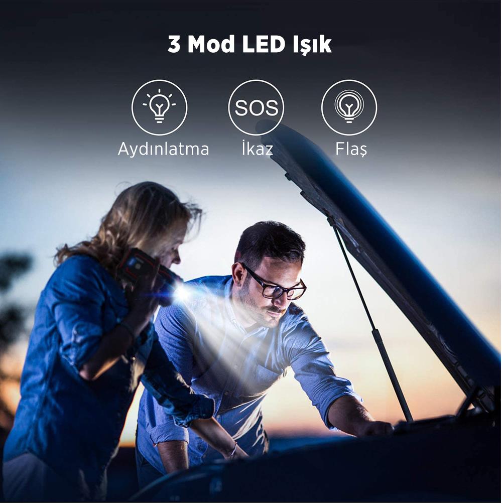 Aracınızı çalıştırmaya ve cihazlarınızı şarj etmeye ek olarak, Jstar One ayrıca ek güvenlik, koruma ve rahatlık sağlamak için Ultra-parlak LED el feneri, flaş, SOS ve uyarı modlarına da sahiptir.