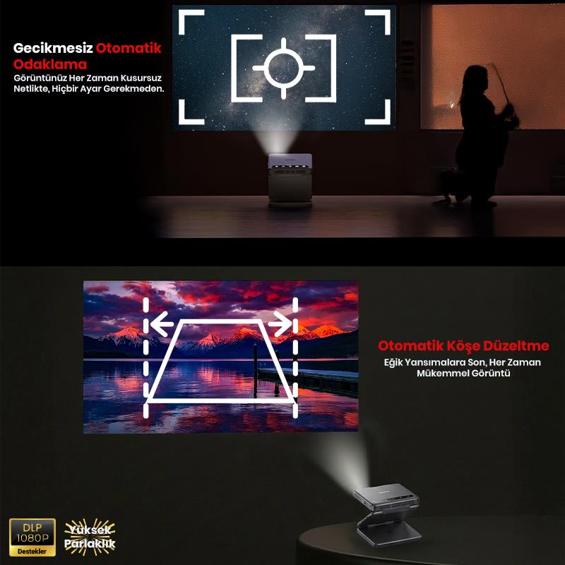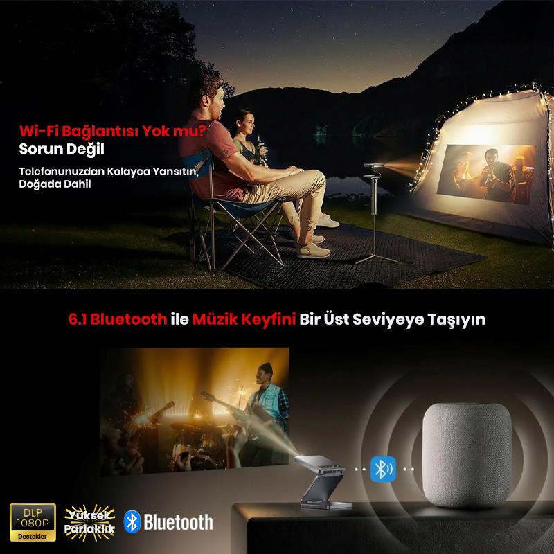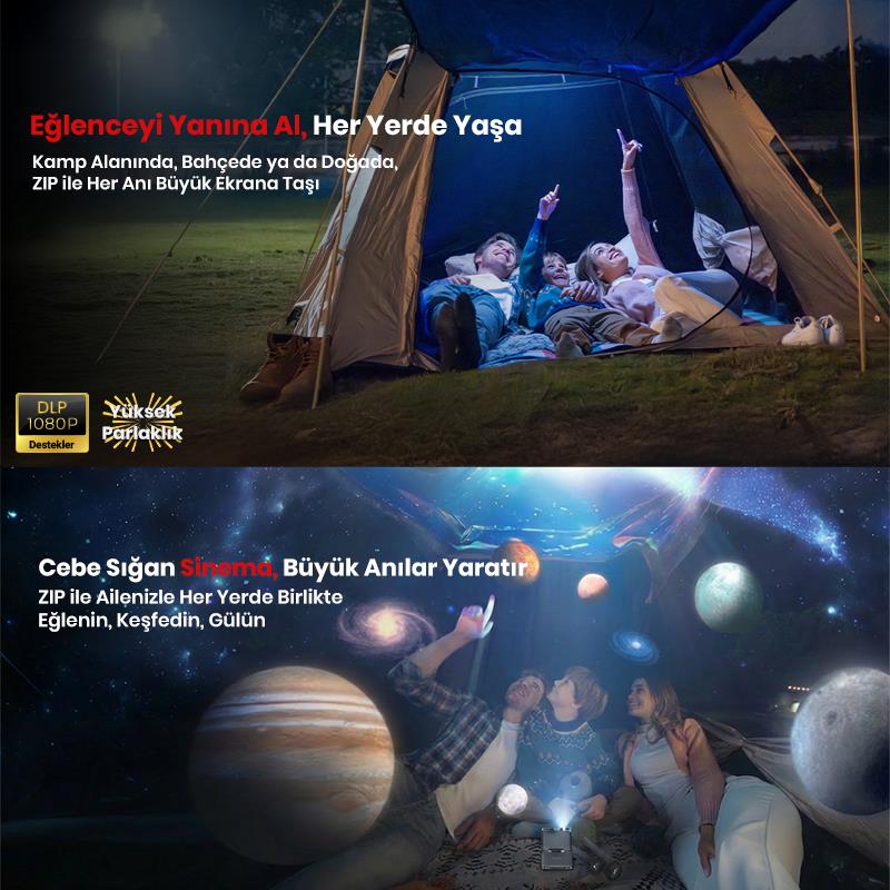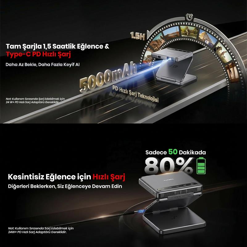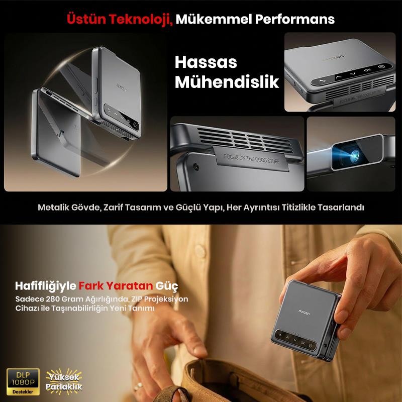 Vankyo Aurzen ZIP Katlanabilir DLP 1080P Destekli Bataryalı Projeksiyon Cihazı +Auto Focus+Auto Keystone+Type-C Hızlı Şarj+6G WiFi+6.1 Bluetooth Koyu Gri - PS5/PS4/XBOX